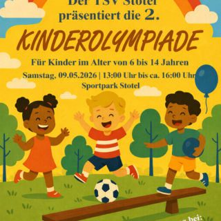 Am 09. Mai wird’s sportlich, bunt und richtig spaßig! Der TSV Stotel lädt alle Kinder von 6 bis 14 Jahren zur 2. Kinderolympiade in den Sportpark ein.
